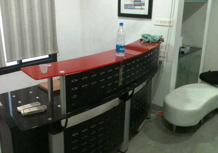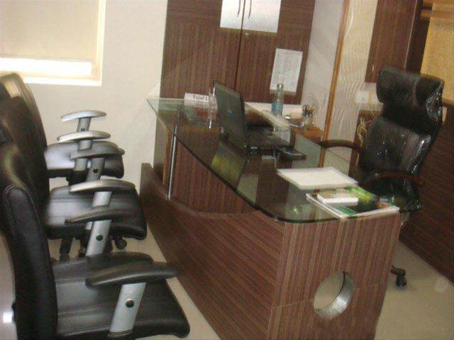 550 sq-ft fully furnished office space for rent in Satellite, Ahmedabad, located in a newly built commercial building. Furniture includes 1 cabin, 5 workstations, reception and small waiting area. Contact Gujarat Property on +919737777776 or send inquiry on info@gujaratproperty.com