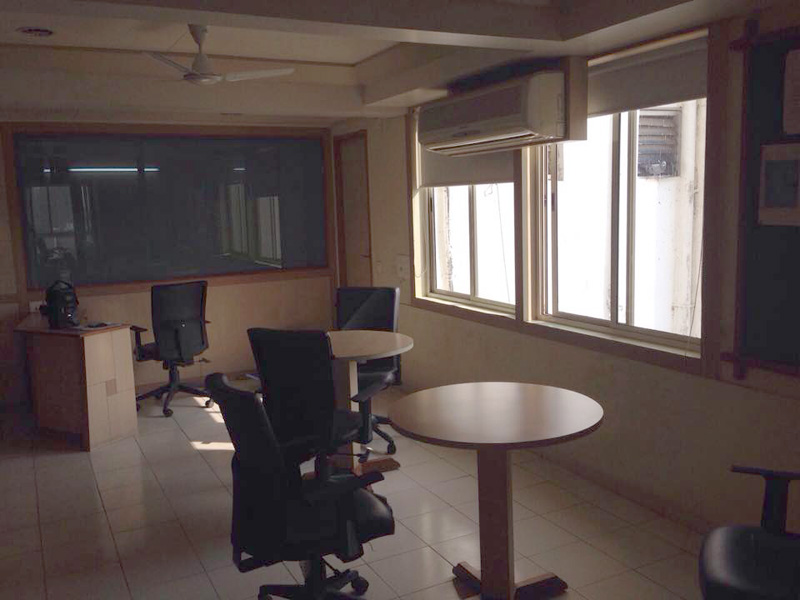 1800 sq-ft fully furnished office space for rent on Ashram Road, Ahmedabad in a prime commercial building. Furniture includes 2 cabins, conference room and 12 workstations. Contact Gujarat Property on +919737777776 or send inquiry on info@gujaratproperty.com