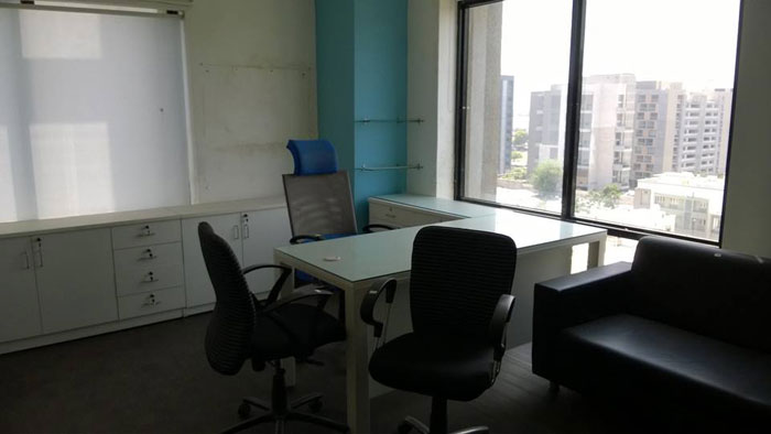 1000 sq-ft fully furnished office space on rent in Prahladnagar, Ahmedabad. This office is located on 100 ft Road is suitable for IT Companies, furniture includes reception, waiting area, cabin Cabin, conference room with capacity of 6, 12 work stations and integrated CAT 6 cabling. Contact Gujarat Property on +919737777776 or send inquiry on info@gujaratproperty.com