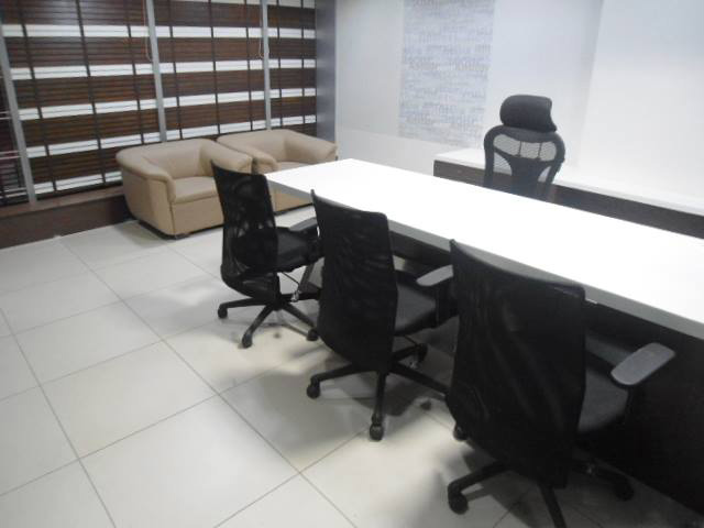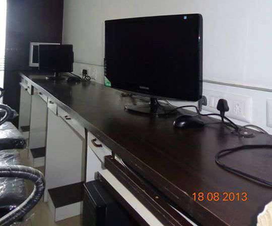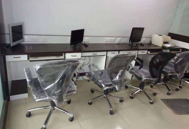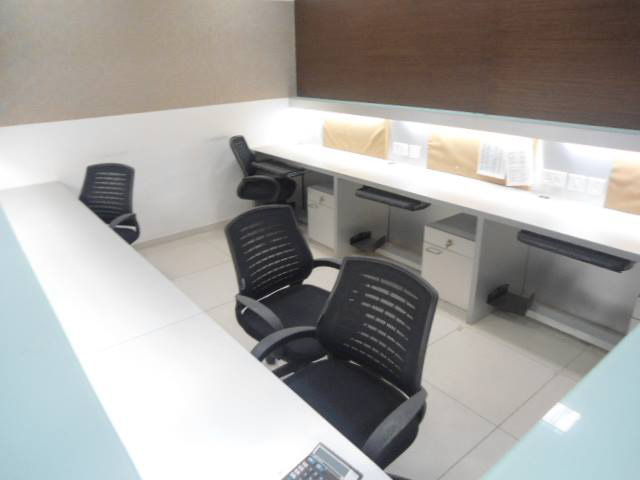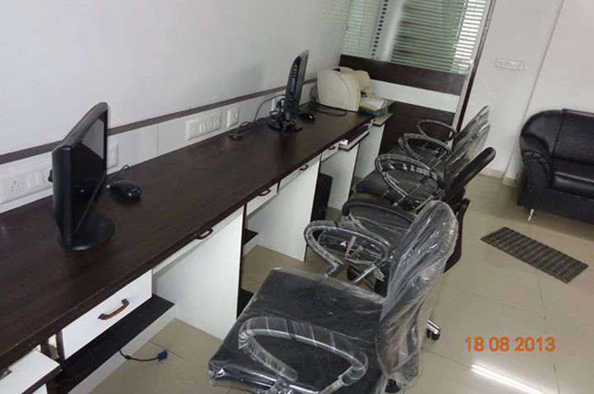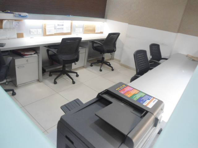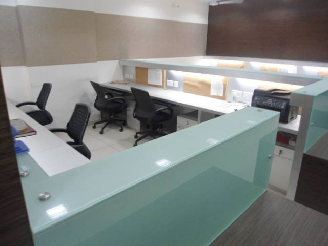550 sq-ft fully furnished office space for rent in Satellite, Ahmedabad, located in a newly built commercial building. Furniture includes 1 cabin, 5 workstations, reception and small waiting area. Contact Gujarat Property on +919737777776 or send inquiry on info@gujaratproperty.com